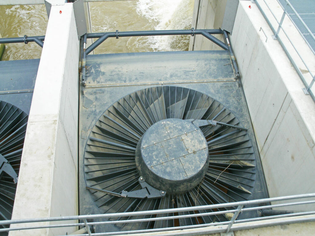 Les turbines Francis, connues pour leur robustesse, étaient encore souvent mises en place dans les installations de basse chute comme celle du Ramier au début du siècle. Les turbines Hélices et Kaplan, plus modernes, ont connu leur essor pendant cette période et complètent le dispositif. Le groupe Kaplan en particulier, par sa capacité à modifier la position de ses pales en fonction de l’ouverture du vannage, offre une régulation particulièrement précise et performante sur ce type d’installation.